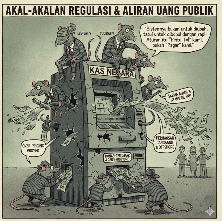 Ada sesuatu yang busuk tapi rapi dalam cara uang publik berpindah tangan di negeri ini. Sejumlah kajian dan laporan terpercaya menunjukkan, ada pola sistemik yang memungkinkan triliunan rupiah dana negara mengalir ke saku politik melalui proyek, perdagangan internasional, CSR, dan pembiayaan BUMN.