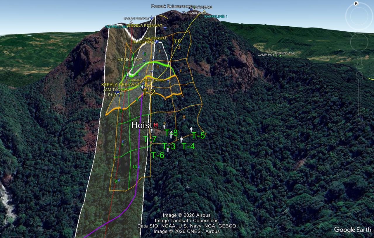 Evakuasi direncanakan menggunakan helikopter mengingat medan yang curam, vegetasi rapat, serta keterbatasan akses jalur darat. Hingga berita ini diturunkan, tim SAR gabungan masih melakukan pengamanan lokasi serta persiapan teknis evakuasi udara sambil menunggu kondisi cuaca yang memungkinkan.