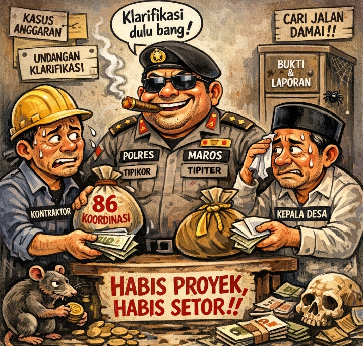 MAROS — Keluhan dari sejumlah rekanan, kontraktor, dan kepala desa di Kabupaten Maros membuka dugaan adanya pola berulang dalam proses pemanggilan klarifikasi oleh oknum aparat penegak hukum (APH). Alih-alih berujung pada proses hukum terbuka, sejumlah pihak mengaku perkara justru “mengendap” setelah melalui tahapan yang mereka sebut sebagai “koordinasi”.