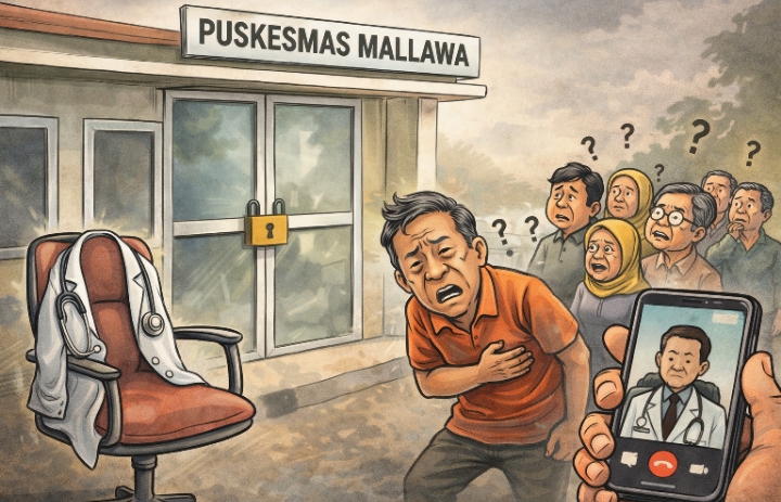 MAROS — Pelayanan kesehatan di wilayah Mallawa, Kabupaten Maros, tengah menjadi sorotan tajam. Warga mengeluhkan kondisi memprihatinkan di Puskesmas Mallawa yang disebut tidak memiliki dokter jaga untuk melayani pasien secara langsung.