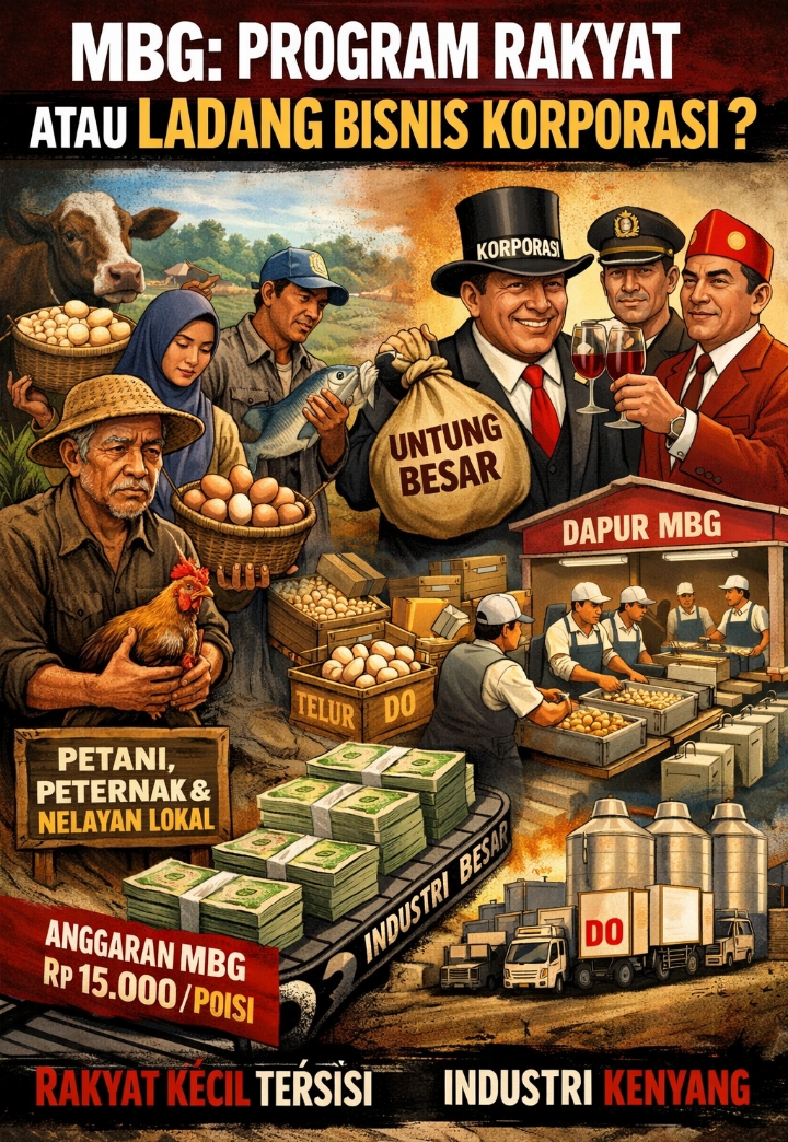 Situasi ini memunculkan kritik keras dari sejumlah pengamat yang menilai program MBG berpotensi berubah menjadi skema ekonomi yang hanya mengenyangkan korporasi, sementara rakyat kecil tetap menjadi penonton.