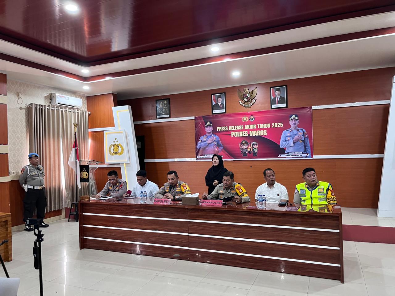 MAROS — Kepolisian Resor (Polres) Maros terus mengintensifkan pendekatan humanis dalam menjaga keamanan dan ketertiban masyarakat (kamtibmas) sepanjang tahun 2025. Komitmen tersebut disampaikan langsung Kapolres Maros saat konferensi pers akhir tahun di Gedung Alula Parameter Polres Maros, Selasa (30/12/2025).