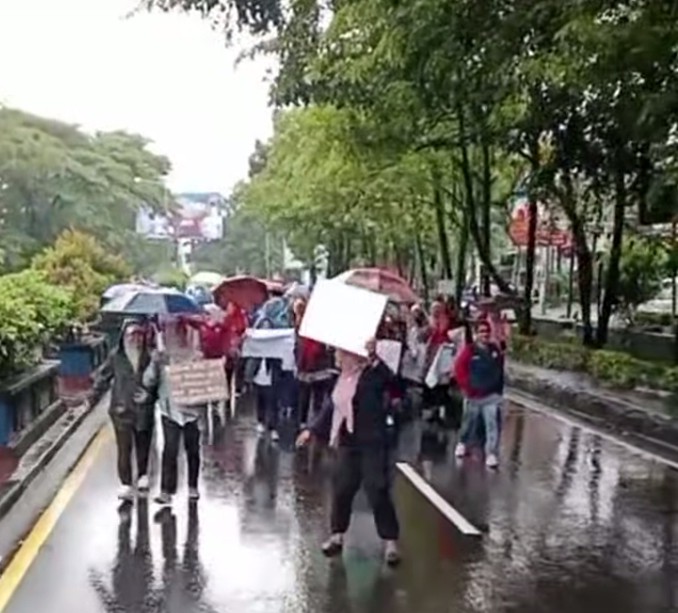 Poster bernada kritik juga terlihat dalam aksi tersebut. Salah satunya bertuliskan “Mutasi Dia… Menakutkan”, yang mencerminkan kegelisahan para guru terhadap kebijakan yang dianggap menghapus penghasilan mereka secara tiba-tiba.