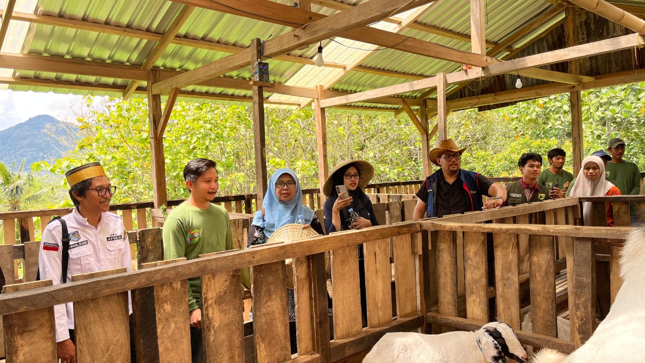 Tim juga meninjau area hijauan pakan ternak hasil kolaborasi mahasiswa dan masyarakat. Lahan ini dikembangkan untuk memastikan ketersediaan pakan berkelanjutan serta menjadi model pertanian terpadu yang dapat direplikasi warga desa.